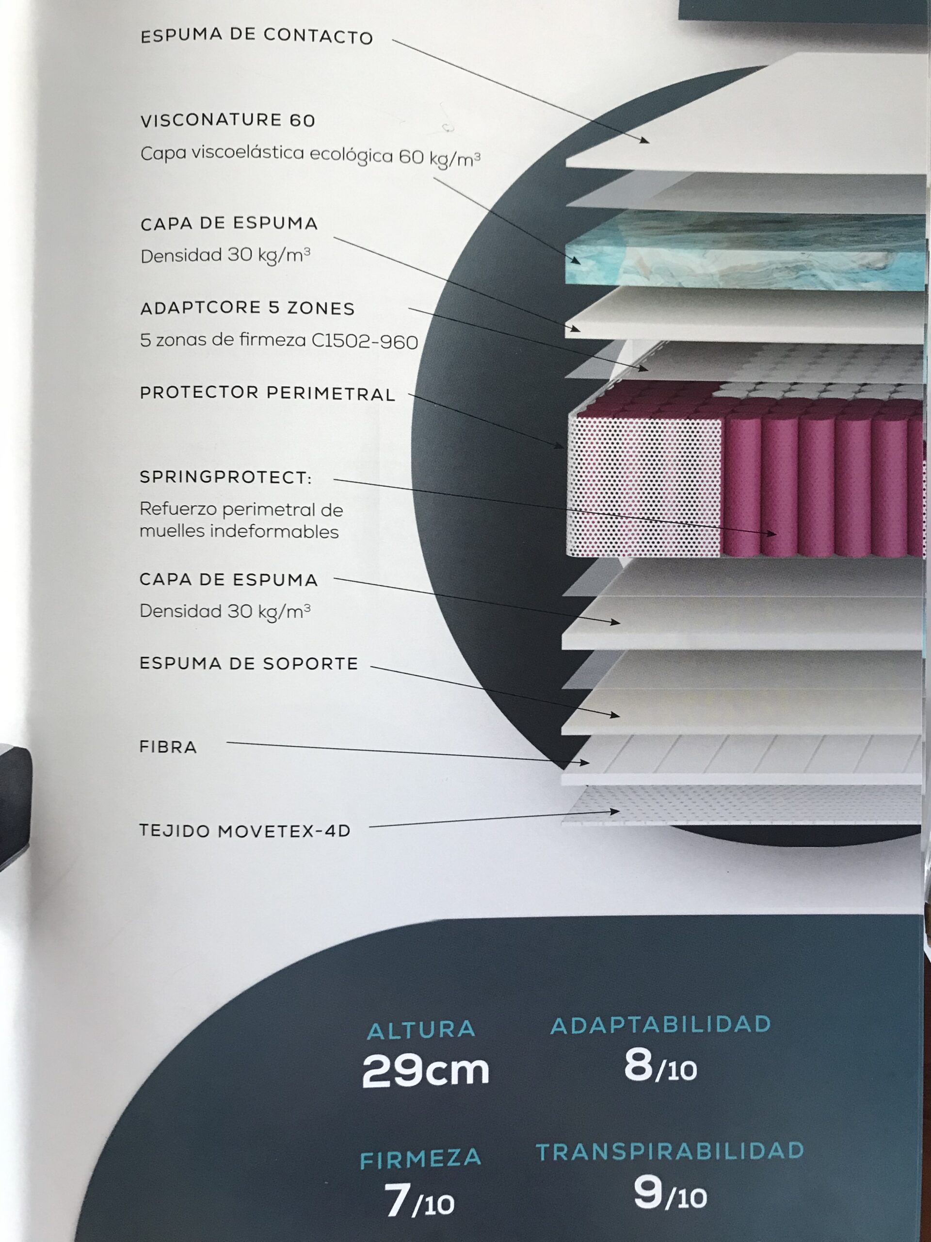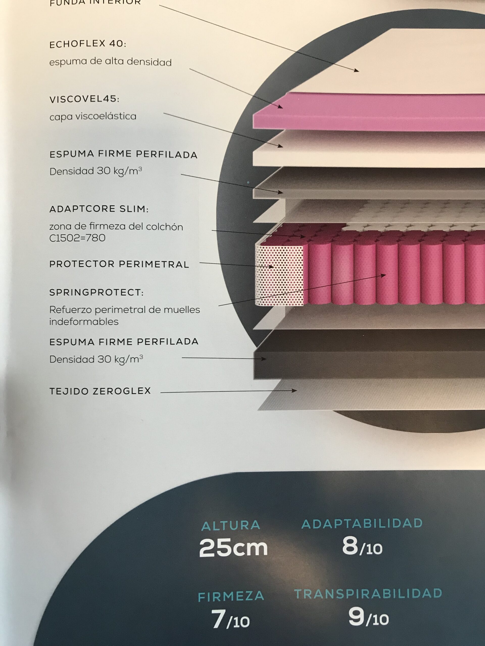 Colchón Mod. BERLÍN, núcleo de muelle ensacado y refuerzo perimetral para evitar deformaciones laterales, acolchado 1 cm Visco-gel cara verano, este material atérmico tarda más en absorber el calor aportando frescura, cara invierno 2 cm Viscoelástico AD en acolchado .CONSULTAR PRECIO SEGÚN MEDIDAS