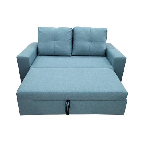 Optimiza tu espacio con nuestro versátil sofá de dos plazas, que se transforma fácilmente en una cómoda cama de 135x190, al tirar de las correas ubicadas bajo el asiento, gracias a su sistema de nido extraíble de elevación.